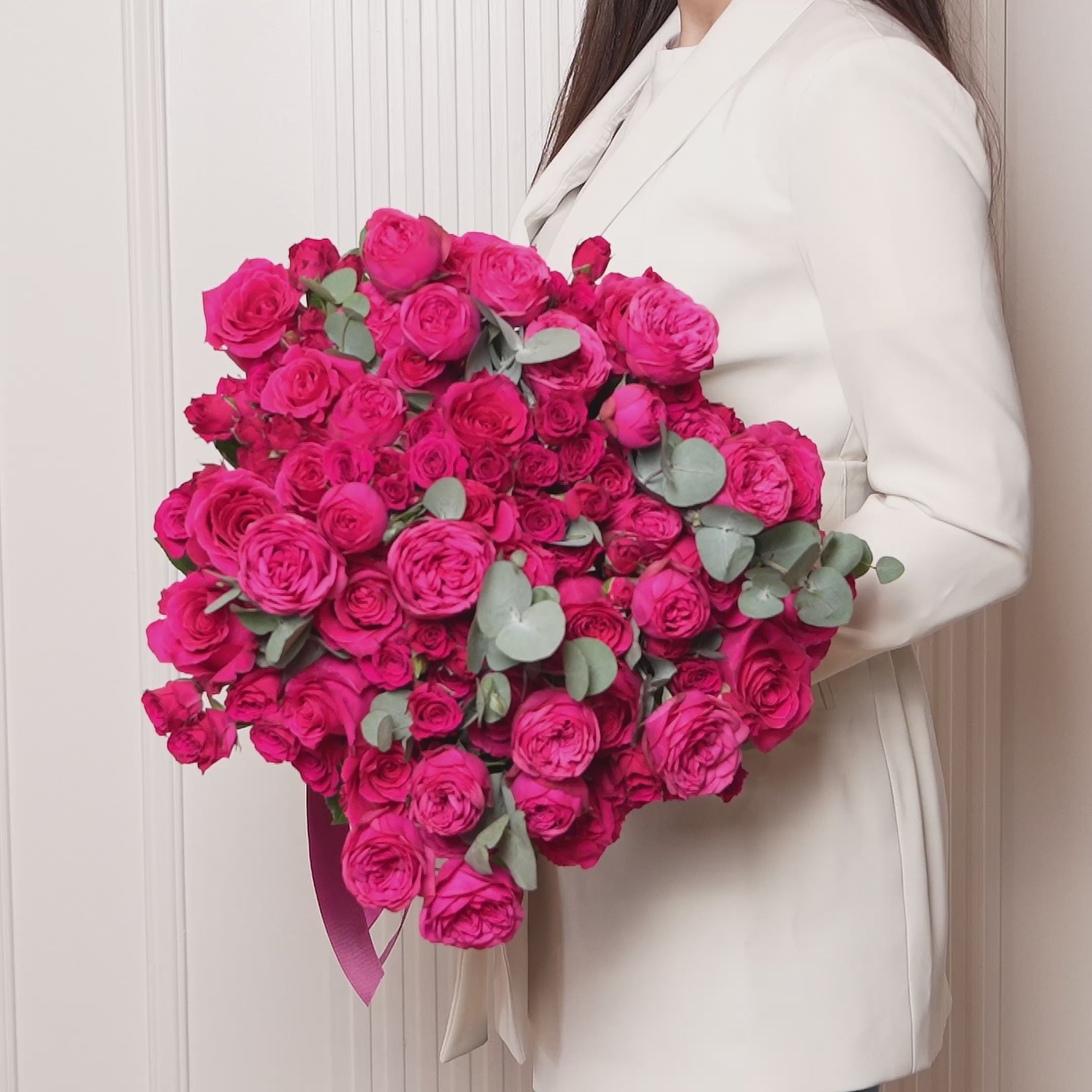 Confident, playful, and full of charm—Margot brings the wow factor. Featuring an opulent mix of fuchsia roses, baby roses, and garden-style blooms softened with eucalyptus, this bouquet is made to impress. Give it when ordinary isn’t enough—this is for unforgettable entrances and unapologetic love.