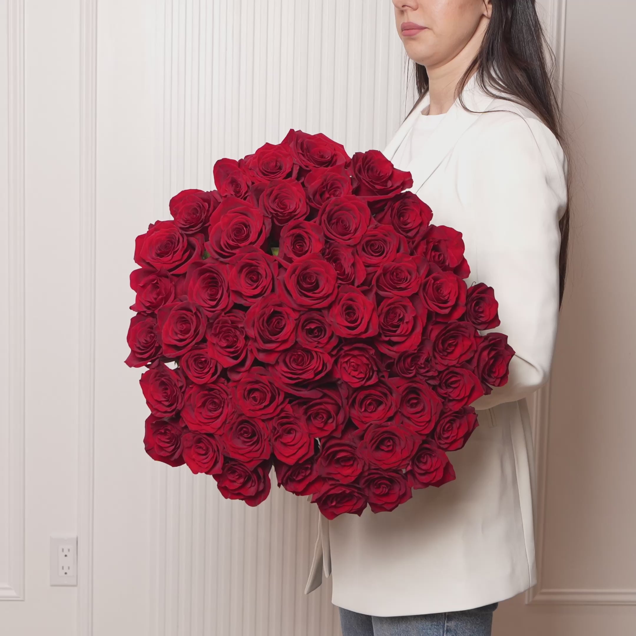 Dramatic, refined, and deeply romantic—Rafaella makes hearts pause. Featuring 50 velvety red roses arranged in perfect symmetry, this bouquet is a grand gesture of love, respect, and timeless beauty. It's not just a bouquet—it's a declaration.