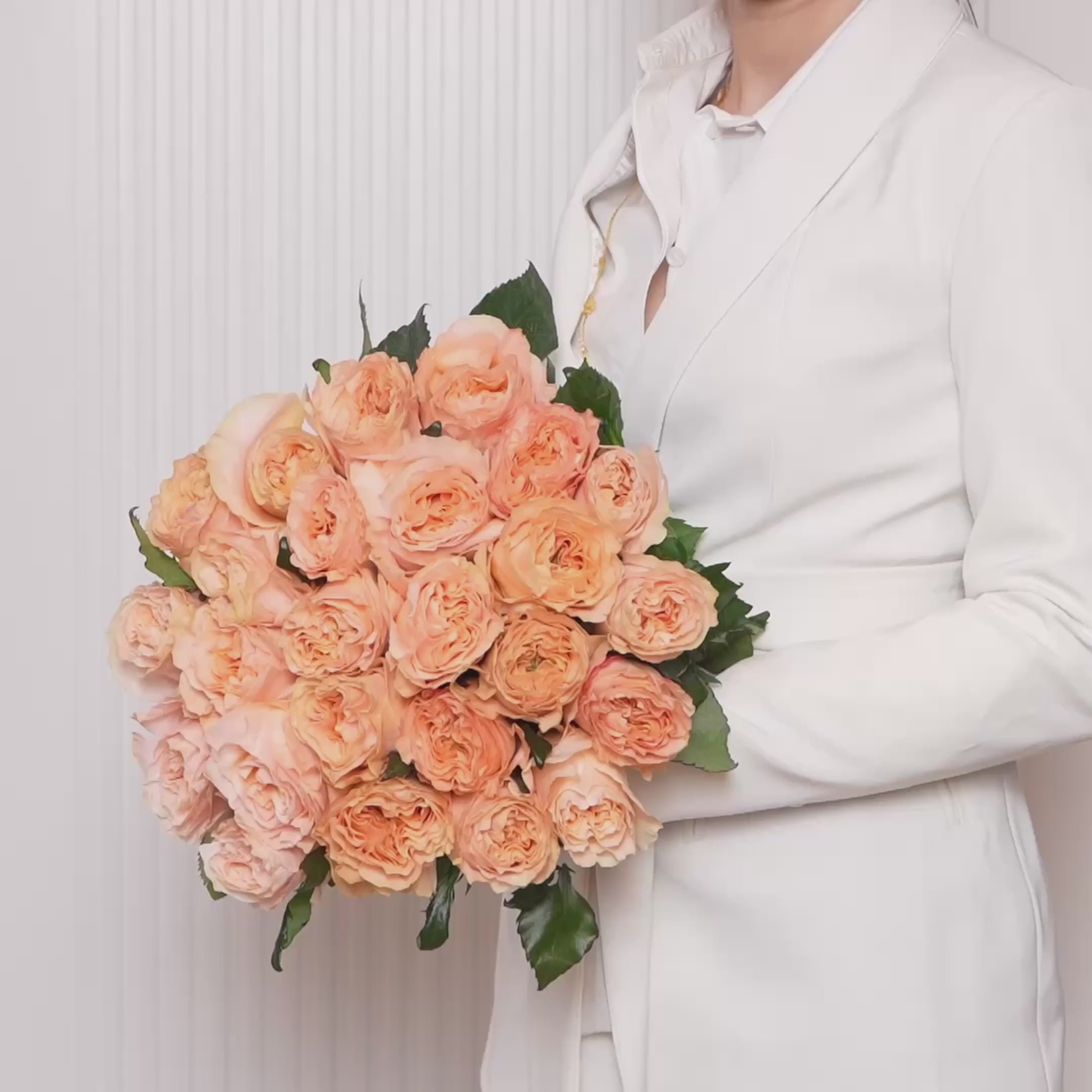 Elevate the moment with Celine—a graceful gathering of premium peach garden roses known for their ruffled elegance and soft glow. Designed to evoke warmth, tenderness, and understated luxury, this bouquet is a timeless gesture for someone who deserves the very best.